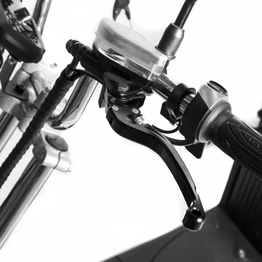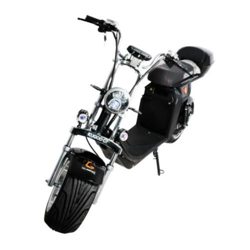Электроскутер Citycoco Kugoo С7 - это новая модель 2021 года от компании kugoo, имеет отличные технические характеристики, отличается стильным дизайном. Kugoo c7 оснащен мощным мотором 3950 ватт, что позволяет ему развивать скорость до 60 км\ч. Предельный вес райдера составляет не более 200 килограмм. Электроскутер kugoo c7 подойдет для длительных поездок на большие расстояния. Благодаря батарее 50 Ah, характерной бренду kugoo, он может проехать до 70 км без дополнительного подзаряда. Безопасное торможение обеспечивают надежные дисковые тормоза. Мощный электроскутер заводиться ключом запуска, который идет в комплекте. Безопасную езду обеспечивают поворотники, сигнал поворотов и задние зеркала.Модель Citycoco kugoo оснащен LED фарами, которые обеспечивает райдеру комфортную езду в темное время суток. Главная особенность этой модели от компании kugoo двенадцати дюймовые диски и пневматические колеса. За счет этого на электроскутере можно ездить не только по городским трассам, но и по бездорожью. В нашем интернет-магазине вы можете купить электроскутер Kugoo С7 в черном цвете по выгодной цене а также аксессуары и запчасти к вашему электроскутеру.