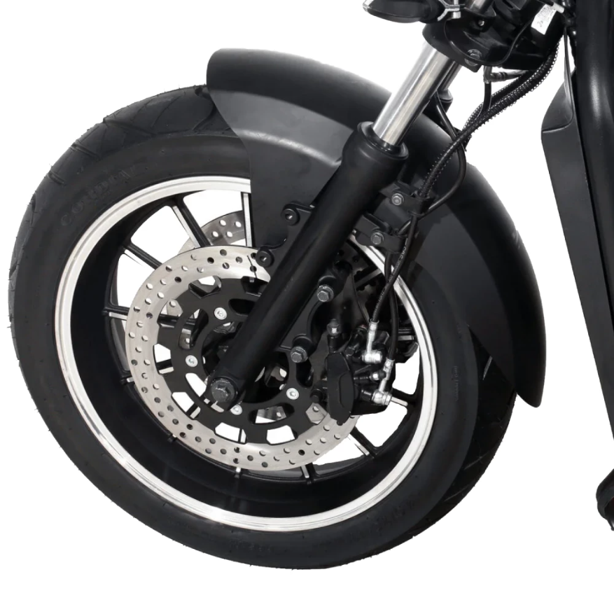 За безопасность райдера отвечает двойная система гидравлических дисковых тормозов на обоих колёсах. Присутствует шумная система сигнализации с блокировкой заднего мотор колеса.