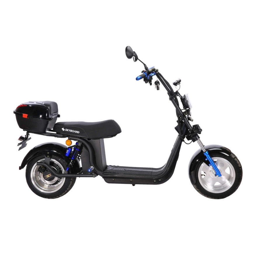 Электроскутер CityCoco Skyboard BR30-3000 (Don) – инновационный вариант скутера с литыми дисками. Первое, что понравится ездоку, скорость и простота управления, комфорт передвижения по городской местности. Приемлемая стоимость, оригинальная начинка и дизайн приятно дивят покупателей. Технические характеристики станут настоящим сюрпризом. Из особенностей электроскутер производитель выделяет такие.