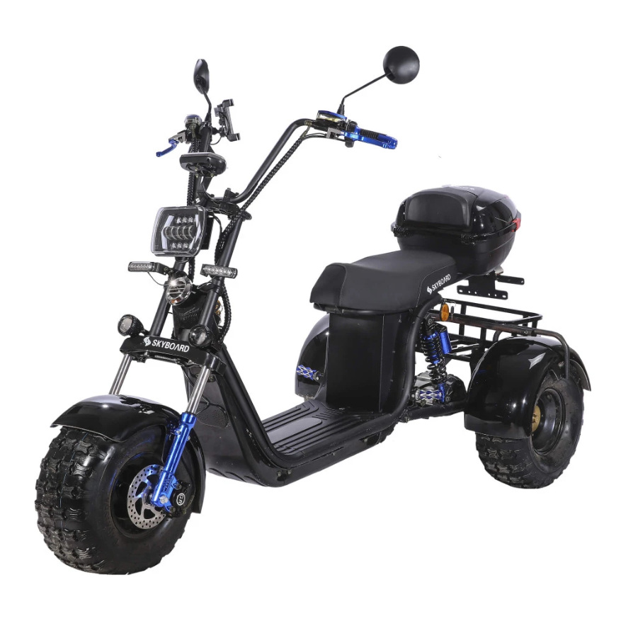 Электроскутер CityCoco SKYBOARD BR40-3000 OFF-ROAD Trike черный - электроскутер нового поколения с внушительной вездеходной колесной частью, способен преодолевать препятствия по бездорожью, делать езду комфортной по городской местности и парковой зоне. Электробайк представлен стильным дизайном, заметный в качестве участника дорожного движения.
