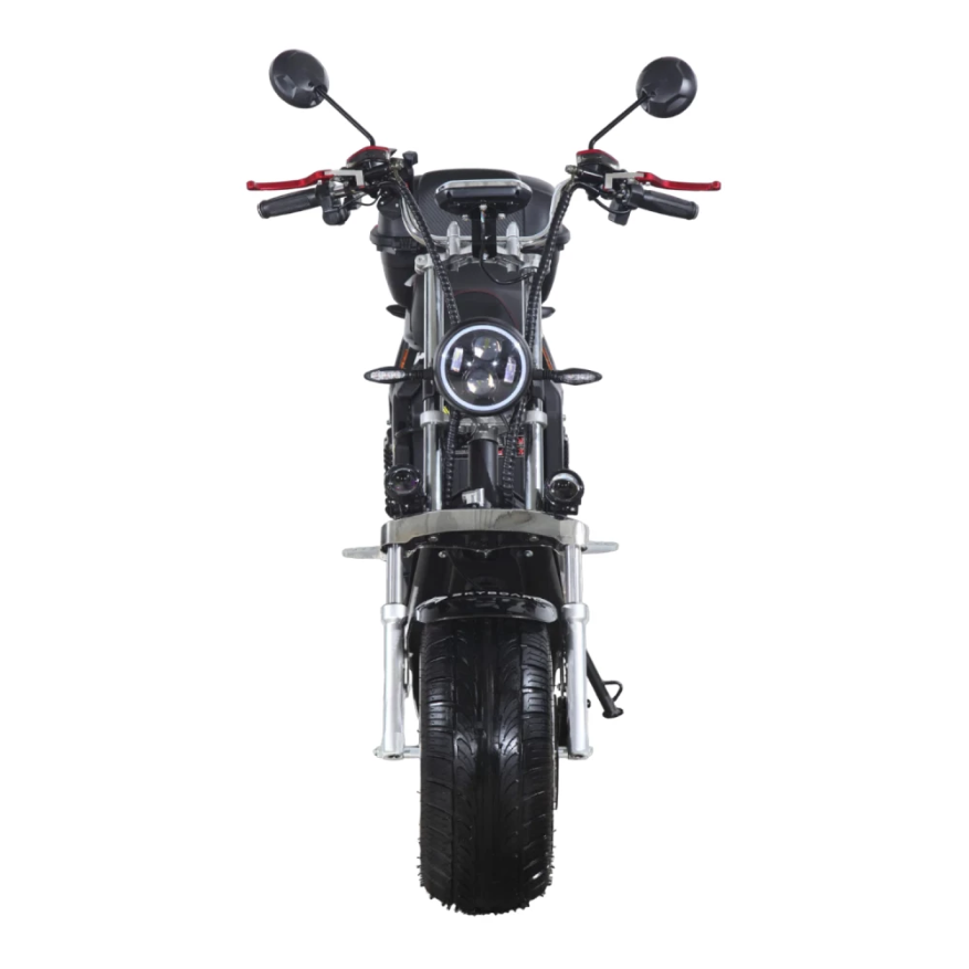 Мощность аккумулятора составляет 3950 W, емкость - 40 Ah. Внешне эта модель отличается своими внушительными размерами. Электробайк имеет массу 105 кг, выдерживает нагрузку до 200 кг. оснащен одной передней LED-фарой, зеркалами заднего вида, двойным сидением. Колеса имеют размер 12 дюймов. Для удобства водителя есть подножка. Покупателю предлагается на выбор несколько цветов (черный, синий, красный).