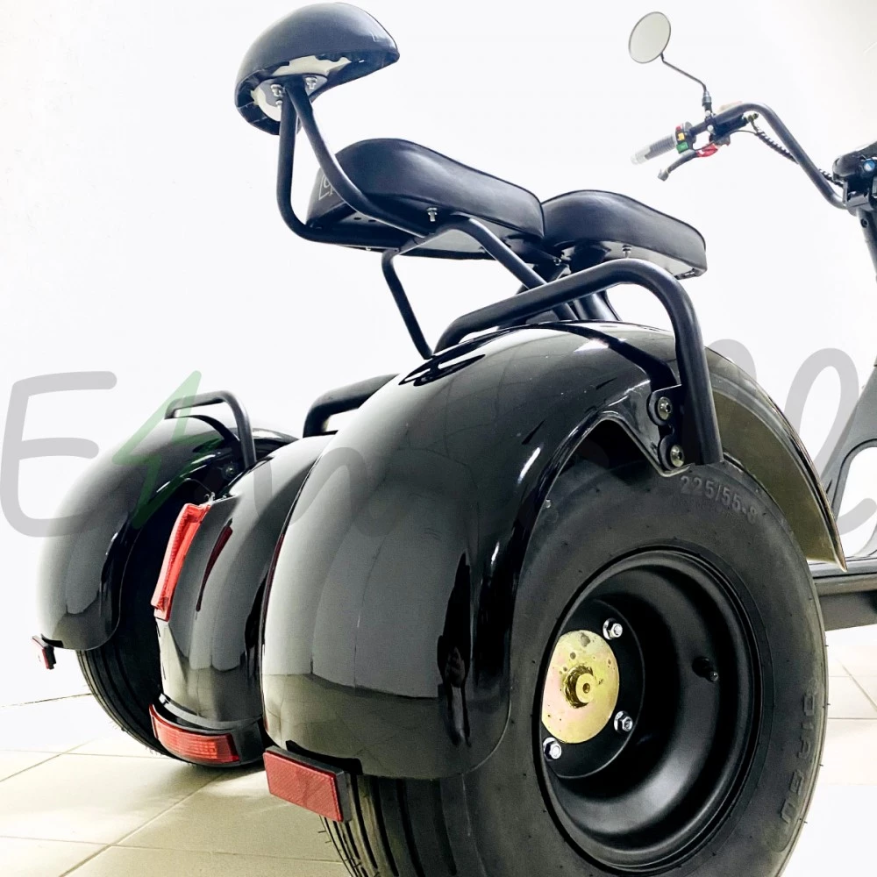 GT-X7 PRO трехколесный – байк 2021 года выпуска. Продвинутый двухместный вариант современного транспортного средства с мотором мощностью 2000 Вт. Оснащен дополнительным местом для пассажира, надежной гидравлической тормозной системой, противоугонной сигнализацией и другим функционалом. Трехколесный электробайк выглядит современно, брутально, выделяется на фоне другого транспорта.