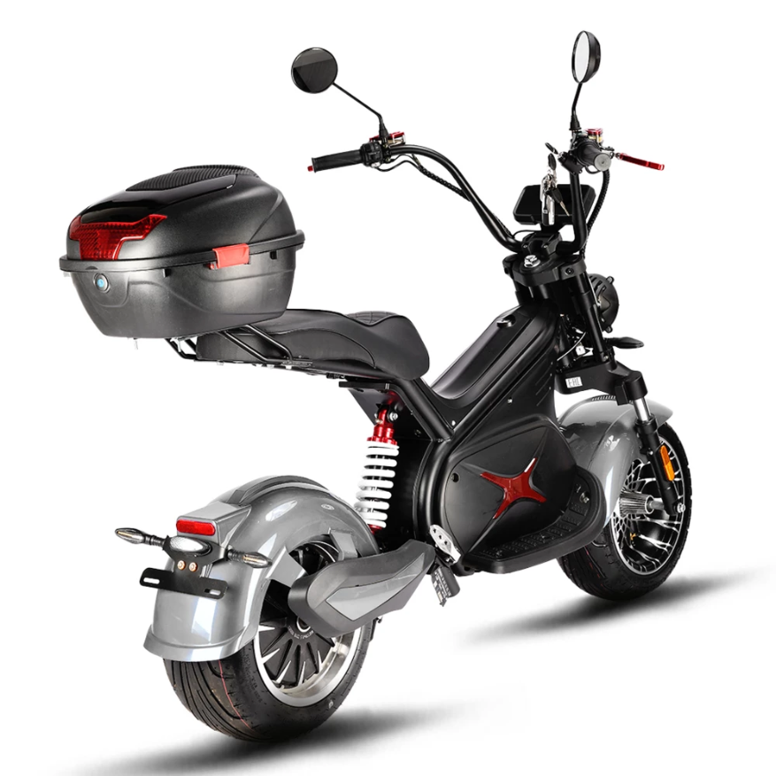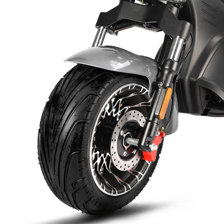 Перед покупкой электроскутера производитель настаивает обратить внимание на преимущества: скоростные параметры, комфорт и безопасность передвижения. При мощности электродвигателе в 5000 Вт способна развивать скорость авто – до 85 км/час. Накатистые 12-дюймовые колеса без труда преодолевают препятствия. Выглядят мощными, легко сцепляются с разными видами грунта. Комфорт езды гарантирован удобным мягким сиденьем, которое рассчитано на продолжительную езду без ощущения усталости и проблем с позвоночником. Оснащенность модели бортовым компьютером позволяет контролировать скорость, протяженность пути и степень заряда батареи. Большая светодиодная фара допускает поездки в ненастье, проблематичное время. Оснащенность зеркалами заднего вида помогает контролировать ситуацию на дороге. Для оформления покупки электроскутера без переплат и посредников, предлагаем связаться с нашим оператором.