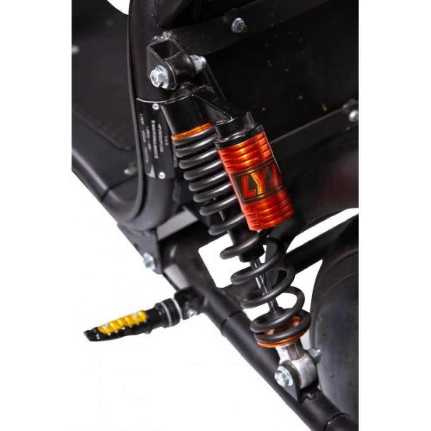Citycoco X11 Pro Max имеет задний привод, мощность двигателя 2000 Вт, в комплектации агрегата аккумулятор емкостью 20 А*ч, с возможностью установки дополнительной батареи. По желанию можно приобрести второй аккумулятор, тогда значительно добавится время в пути. Электроскутер развивает максимальную скорость около 60 км/ч, можно уверенно чувствовать себя в потоке транспорта. Тормозная система дисковая и гидравлическая для полной безопасности.