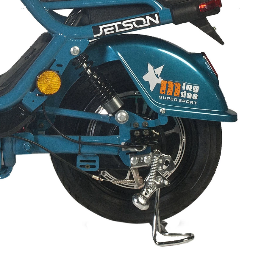 За остановку скутера отвечают два практичных барабанных тормоза и делают её наиболее плавной. Широкие и высокопрофильные колёса диаметром 16 дюймов способны преодолеть любые препятствия на городских и загородных дорогах. На руле скутера Jetson GM-60 находятся ручки тормоза, ручка газа с нескользящим покрытием и кнопки включения и выключения света и переключения передачи. Также на руле располагается мощная LED-фара. Помимо переднего фонаря, для обозначения скутера в вечернее и ночное время на нём установлены яркие габаритные огни. В комплектацию скутера включены сидение со спинкой для пассажира, корзинка для личных вещей и сигнализация.