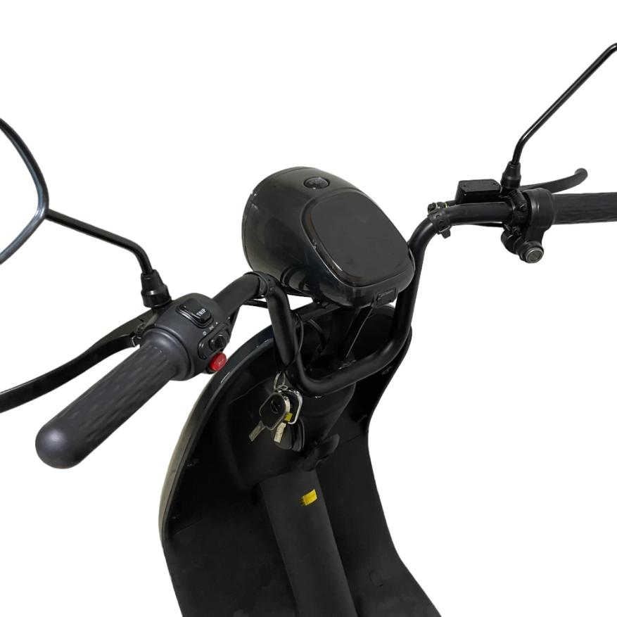 Популярность и востребованность электроскутера связана с привлекательным эстетическим дизайном, качественной начинкой и мощными техническими характеристиками. Электробайк с мощностью мотора 1000 Вт, весом 51 кг и грузоподъемностью в 150 кг способен развивать скорость до 50 км/час и преодолевать на одной подзарядке 55 км пути. Обратите внимание на комплектацию. Она максимально полная. Техника оснащена зеркалами обозрения, большой светодиодной фарой, спидометром, сигнализацией, подножкой для парковки. Практический опыт и отзывы пользователей доказывают безопасность эксплуатации и комфорт пользования электробайком.